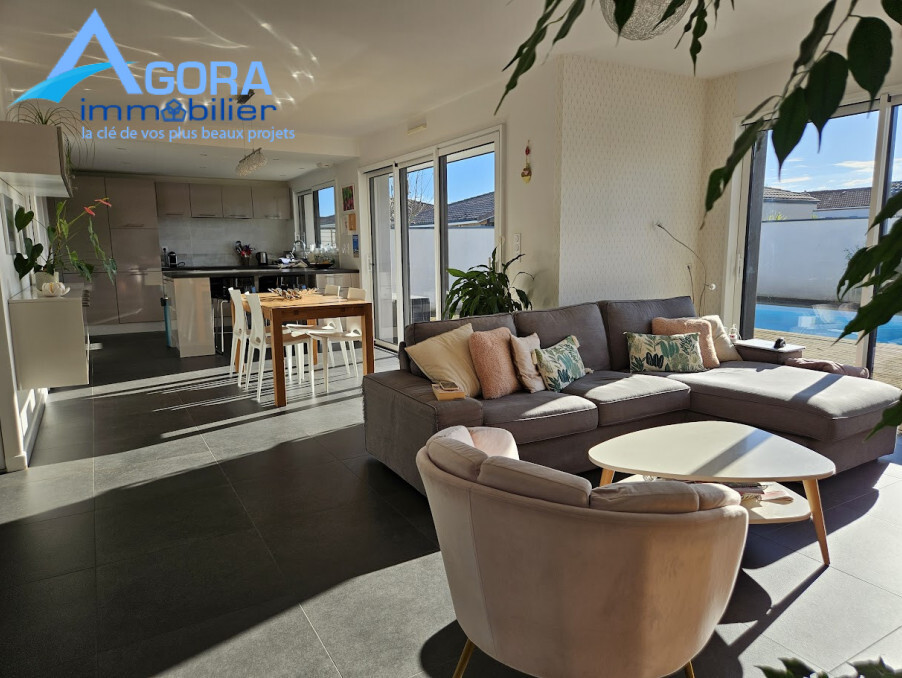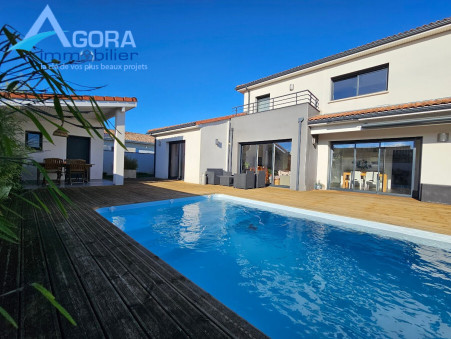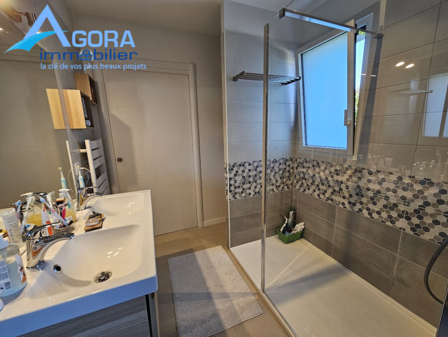 Une chambre parentale (13.58 m²)avec baie vitrée donnant sur la terrasse, 1 dressing et réversible/climatisation. Une seconde chambre (10.38 m²) avec placard. Une salle d'eau traversante (5.05 m²) accessible directement par ces deux chambres. Un WC et un dégagement avec placard. Également au RDC, un bureau avec placard (11.12 m²) ( ou chambre) avec une porte d'accès direct sur l'extérieur. À l'étage (R+1), découvrez : Deux autres chambres de 12 m² et 12.19 m², toutes deux avec placard et climatisation/réversible. L'une d'elles bénéficie même d'un balcon de 5.20 m². Une salle de bains (4.45 m²) équipée de deux vasques, baignoire et sèche serviette. Un WC. Extérieurs et Prestations Haut de Gamme : Profitez d'un jardin clos et d'une magnifique terrasse en bois avec store électrique, donnant sur la piscine au sel (3.5 m x 7.5 m). Pour votre confort estival, un abri de piscine est aménagé avec une salle d'eau complète (douche, lave-mains, et WC) et un local technique. Les équipements modernes sont nombreux : chauffage au sol par Pompe à Chaleur (PAC), volets roulants électriques, et portail électrique. Toutes les portes intérieures sont à galandage. Un atout majeur : l'installation de 9 panneaux photovoltaïques ( 11 m²) en septembre 2024 permet une réduction d'environ 38% de la consommation électrique et génère un revenu annuel de revente (environ 300 à 400 €). Isolation : Laine soufflée d'origine dans les combles ( 20 cm). Dans un lotissement au calme, proche des commerces et des écoles.